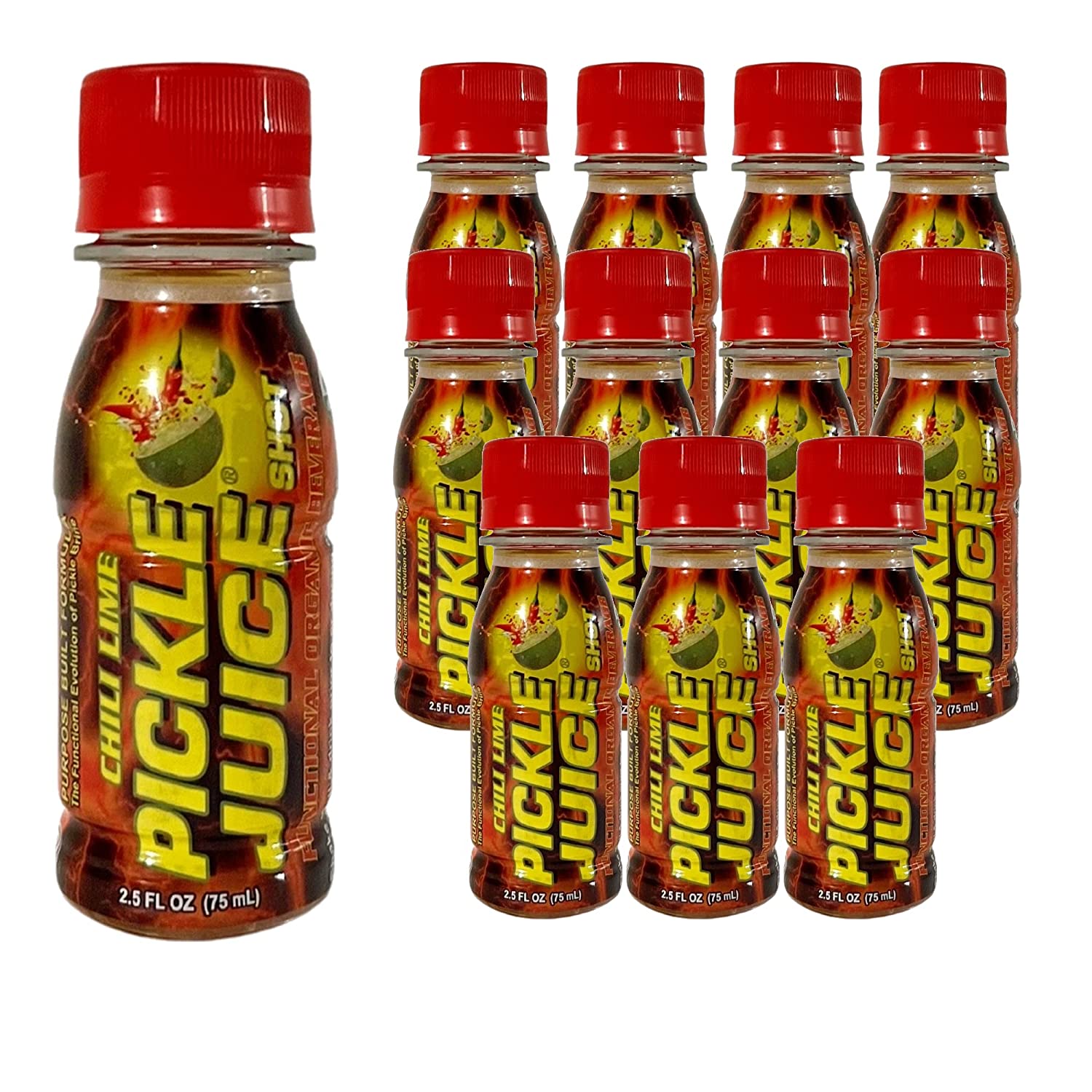 Pickle Juice Sports Drink, 2.5 oz Shot, Chili Lime Flavor, USDA Organic, Extra Strength Muscle Cramp Relief, Pack of 12