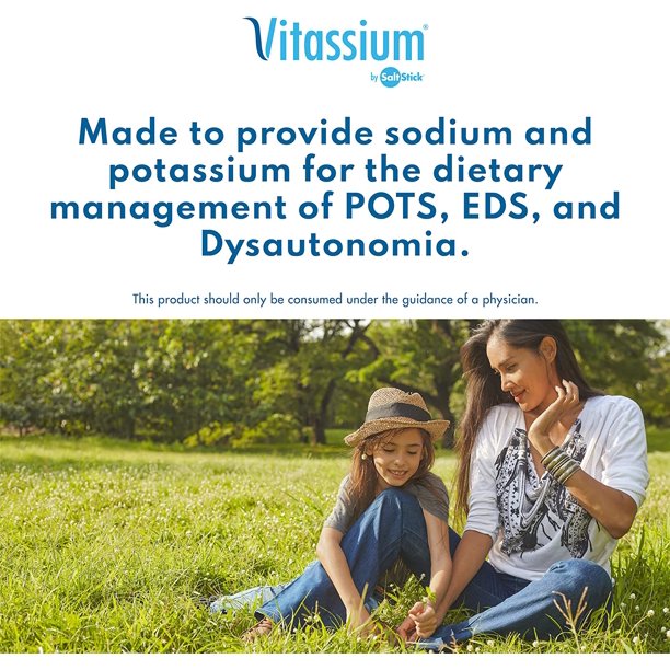 Vitassium is a medical food specifically formulated to provide sodium and potassium for the clinical dietary management for patients with autonomic dysfunction including Postural Orthostatic Tachycardia Syndrome (POTS), Ehlers Danlos Syndrome (EDS), Addison's Disease, Cystic Fibrosis (CF), and Vasovagal Syncope when increased plasma volume has been shown to be beneficial.